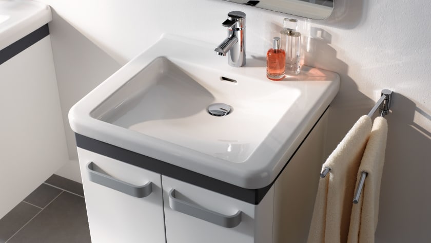De verschillende klassieke designs van Geberit Renova integreren zich harmonisch in elke ruimte. Daarbij komen nog talrijke uitgekiende oplossingen voor bijzondere eisen. Op die manier wordt het heel eenvoudig en betaalbaar om een oude badkamer in een nieuwe, moderne glans te laten schitteren.